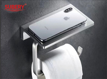 SUS304 Wall Mounted Tissue Holder With Mobile Phone Shelf Images |